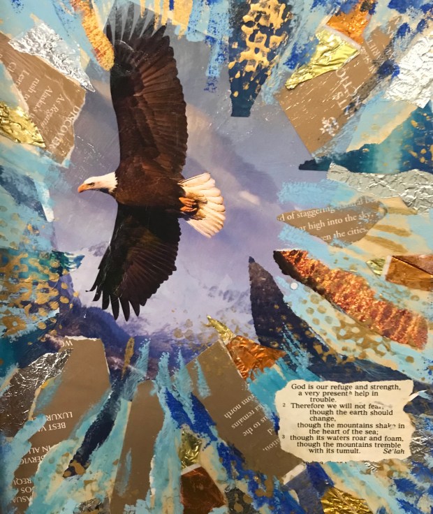 The above mixed media artwork is one I created as part of the Mission and Art Nights at a local family shelter. Each week, volunteers from my church and residents in the shelter (primarily mothers temporarily without homes) met in creative community. We met together to create art, to share a devotional, to laugh and heal, and to share our lives together.