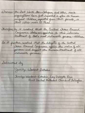 Therefore, be it resolved that the Central Texas Annual Conference states our opposition to this inhumane treatment of God’s most vulnerable persons – children.