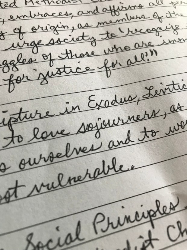 I love that it was discussed as a teachable moment youth and young adults – not the “church of the future,” but the church of the now. I love that it was discussed over a meal in a restaurant that helps develop dignity for “all persons, regardless of country of origin, as members of the family of God.” I love that the author did not hesitate to do God’s work, but instead submitted a handwritten response quickly photocopied and distributed after lunch.